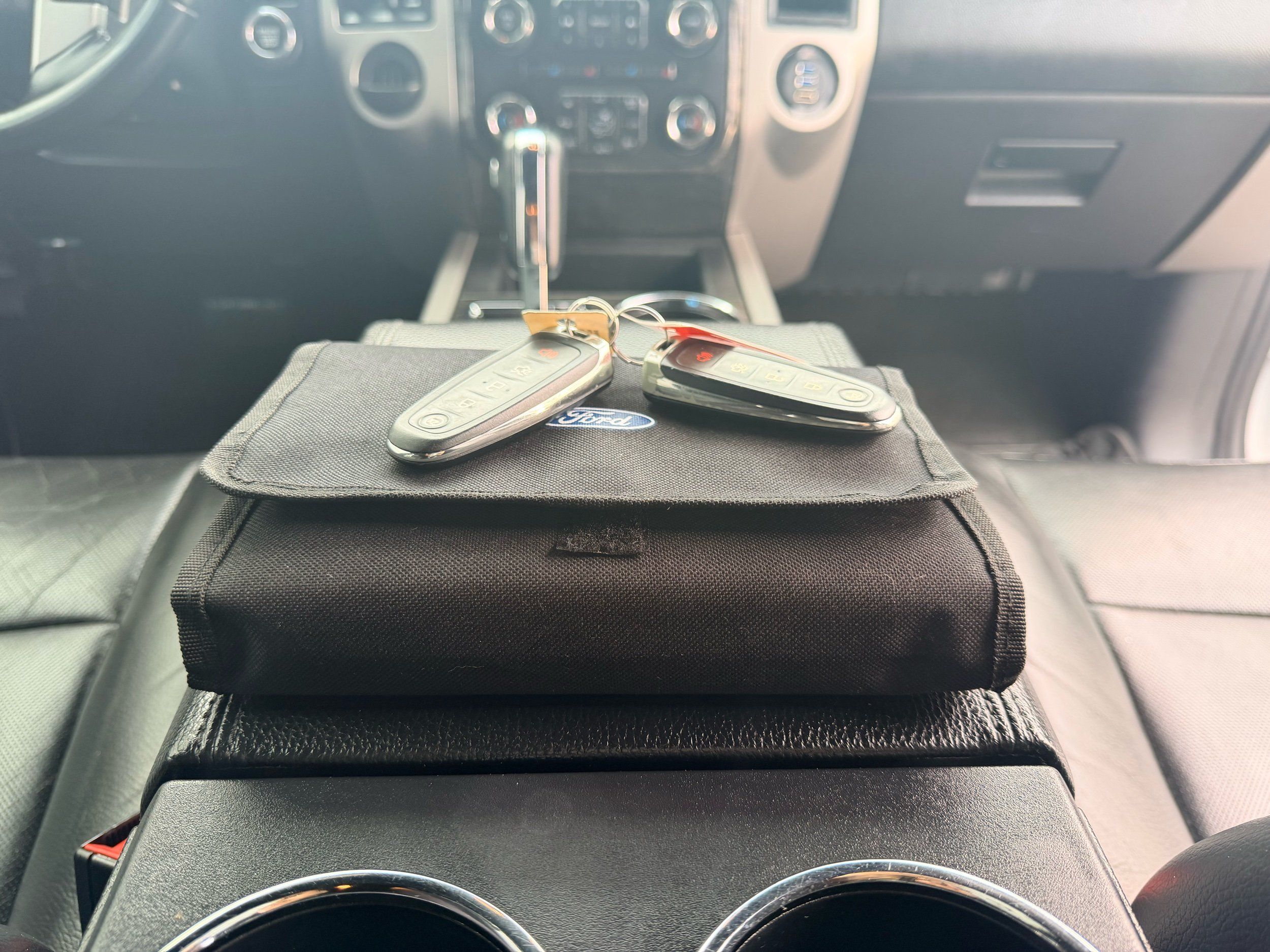 Floor console storage: Covered floor console storage